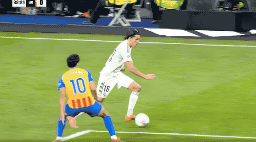 第43分钟,贝林厄姆在禁区线附近连续盘带,突然起脚,皮球直钻死角,皇马半场结束就已经3-0领先了。